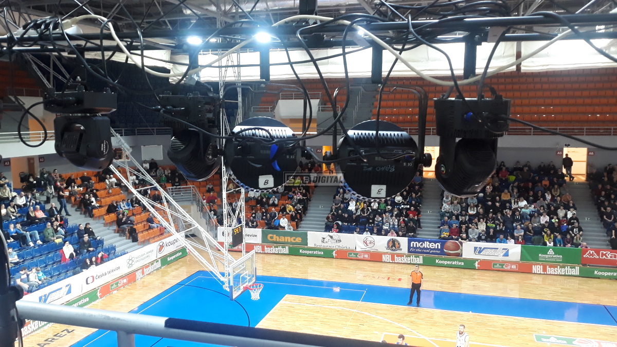 Basket Brno, zápasy KNBL – video přímé přenosy na 5 kamer pro ČT4 Sport Plus a TV Com, efektové osvětlení zápasů